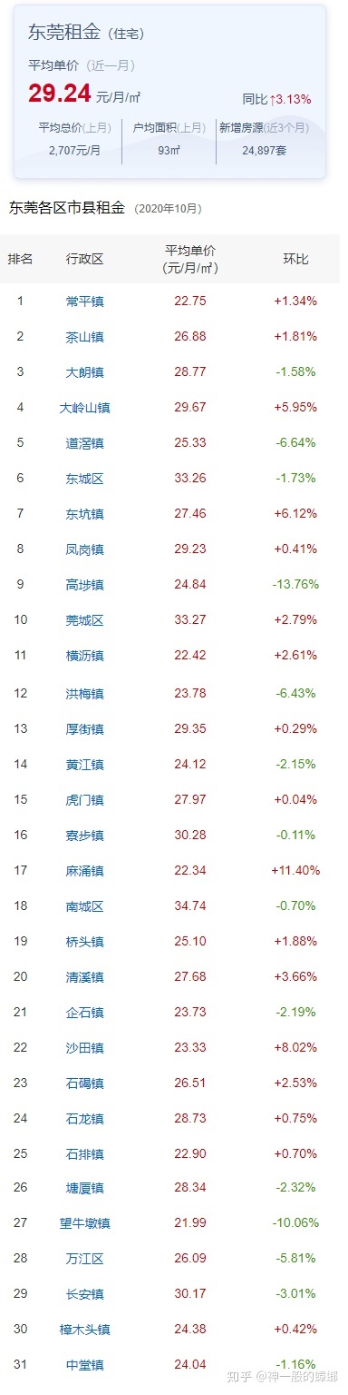 东莞市2020年10月各县区房租水准,只供大家参照(数据来自中国房价行情网)